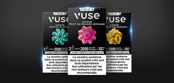 Oui, la Vuse Ultra est compatible avec les recharges Ultra, gammes Intense & Classique, Standards, ePod/Pro et Multipacks. Cependant, seules les recharges Vuse Ultra permettent d’afficher le niveau de liquide, la saveur et le taux de nicotine, y compris les recharges fruits rouges pastèque, fruit du dragon grenade, citron, mangue calamondin et blend doré.