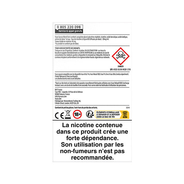 Vente interdite aux mineurs. Produit pouvant contenir de la nicotine, une substance addictive. Utilisation par les non-fumeurs non recommandée.